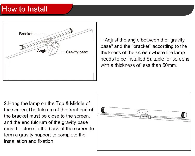 1. Wykonany z asymetrycznym źródłem światła, kierunkowo oświetla obszar biurka, bez oświetlania ekranu, bez błysku.